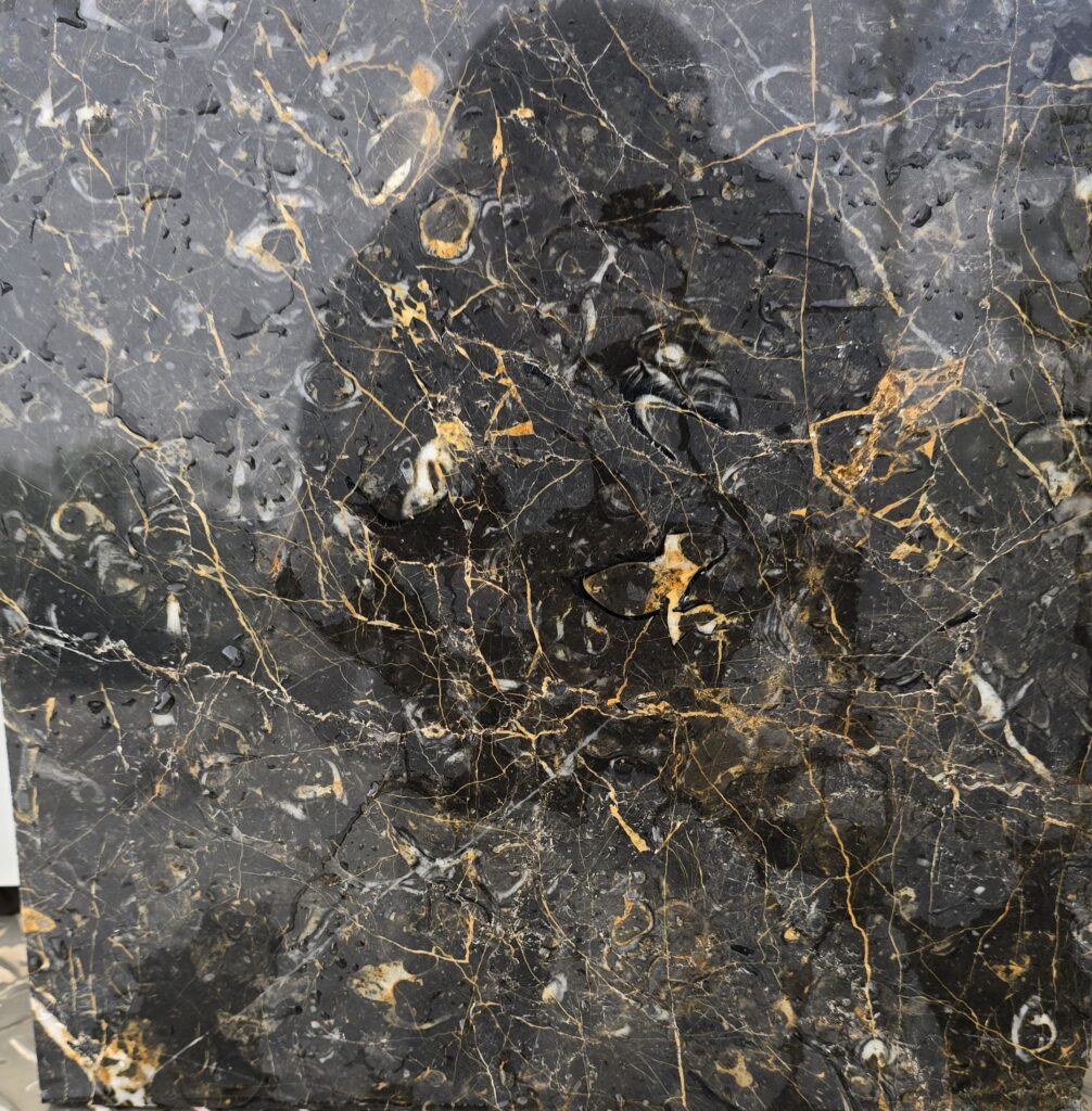 سنگ از نوع مرمریت گلدن بلک با رگههای طلایی و سفید